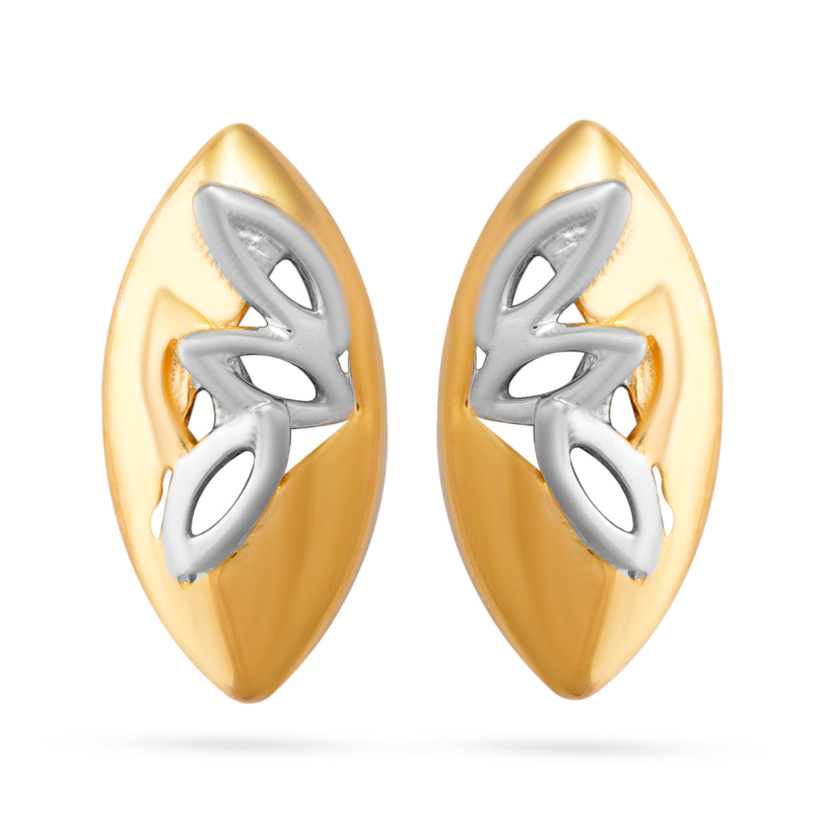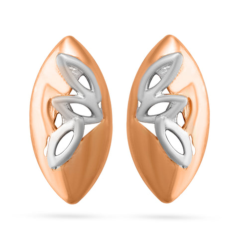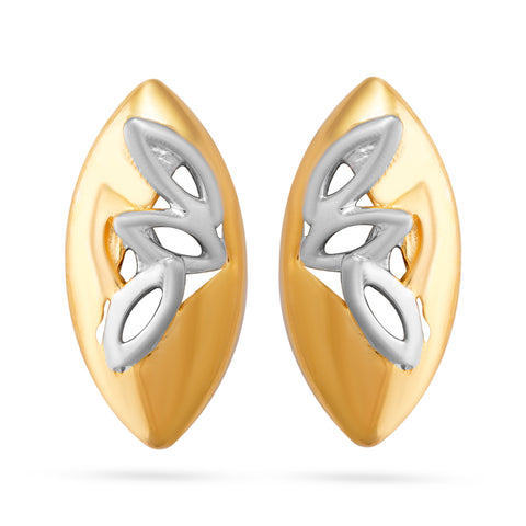 Leaf-Inspired Dual-Tone Stud Earrings - Yellow Gold / HI-VS / 18K